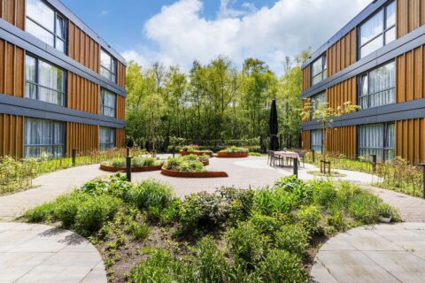 De ligging van Boshuis maakt deze locatie bijzonder. Senioren wonen hier letterlijk midden in de natuur. Binnen stroomt het daglicht naar binnen door de grote ramen, buiten nodigen de wandelpaden en de recreatietuin uit om in beweging te blijven.